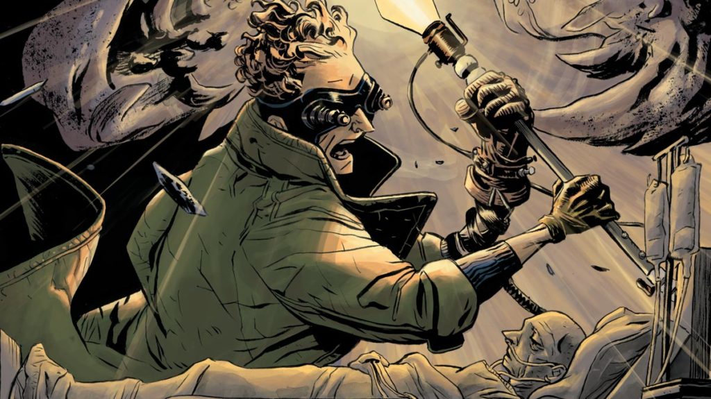 Avec la série BLACK HAMMER, Jeff LEMIRE a écrit l’une des plus belles déclarations d’amour qu’un auteur puisse faire aux comics de super-héros. Nombres de ses personnages sont un clin d’oeil aux héros de son enfance, écrits et dessinés par les plus grands auteurs de l’Âge d’Argent (Joe KUBERT, Jack KIRBY…), et Doctor Star – librement inspiré de Starman – n’échappe pas à la règle.